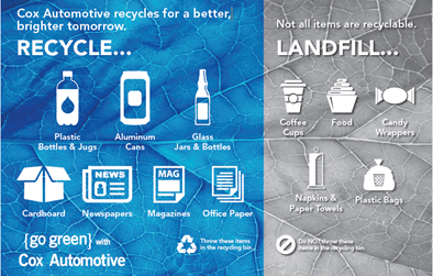 It’s that time of year again. Time to set your New Year’s Resolution, to prioritize your goals and make a concerted effort to be better than you were before. Set your sights on changing the world by participating in the new Single Stream Recycling Program and help Cox Automotive reach our goal to achieve Zero Waste to Landfill by 2024.